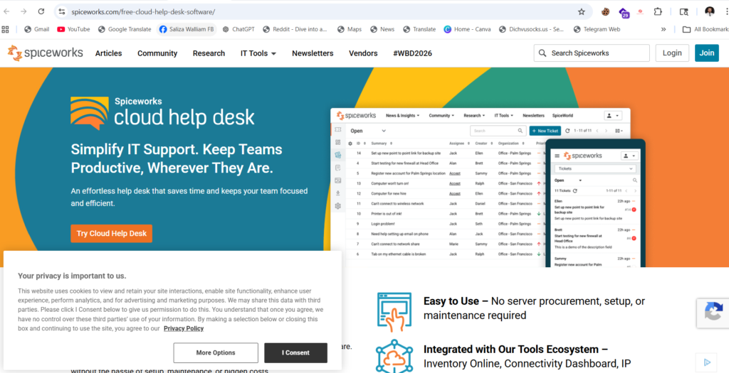 If you’re specifically managing IT support internally — tracking device issues, software requests, and employee tech problems — Spiceworks is genuinely the best free option available.
