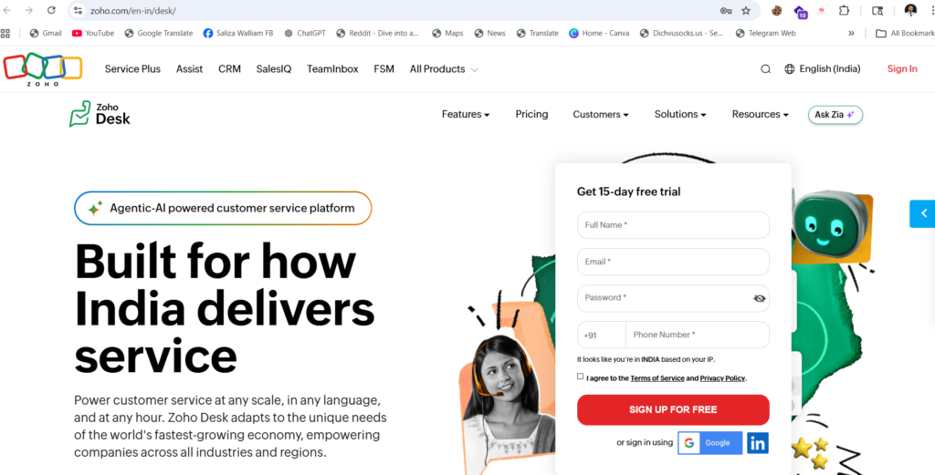 The context-aware ticketing system shows agents the full customer history right alongside the ticket — no switching tabs, no hunting through old threads. Their AI assistant, Zia, helps with sentiment analysis, auto-tagging, and anomaly detection, which is impressive at this price.