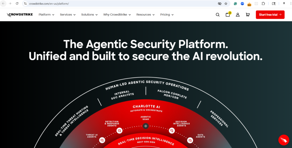CrowdStrike remains the dominant player in Endpoint Detection and Response (EDR). In 2026, their “Charlotte AI” has evolved into a fully autonomous threat hunter.