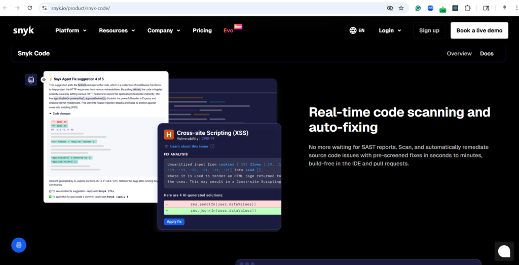 7. Snyk (Developer-First Security)