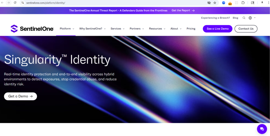 SentinelOne brings AI-driven automation into identity protection. Its Singularity platform correlates identity data with endpoint signals to detect advanced attack patterns that would otherwise go unnoticed.